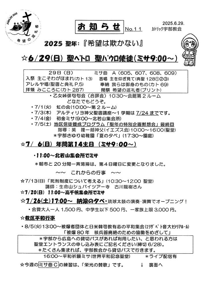 年間第13週(6/29~7/5)のお知らせです。