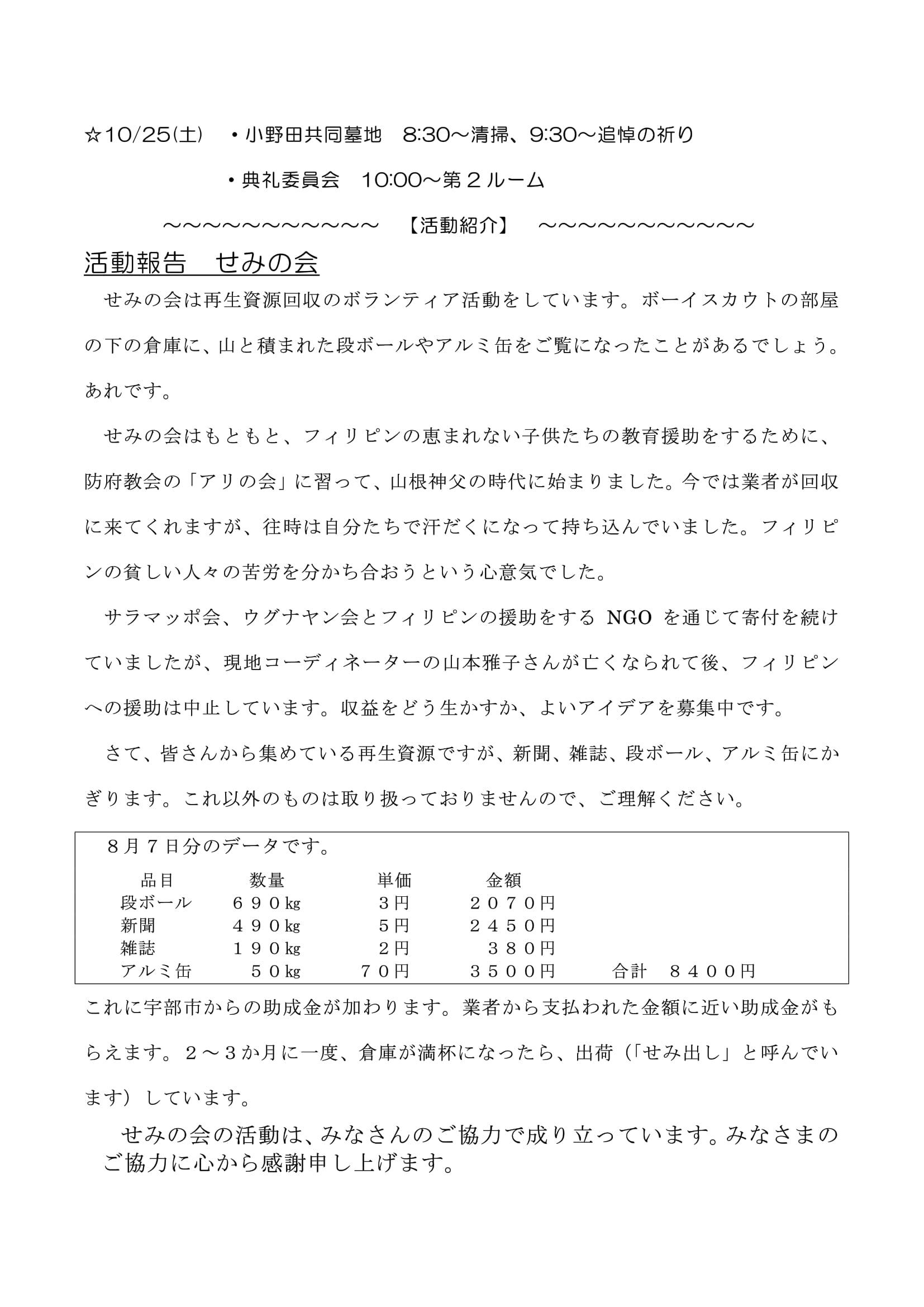 年間第28週(10/12~10/18)のお知らせです。